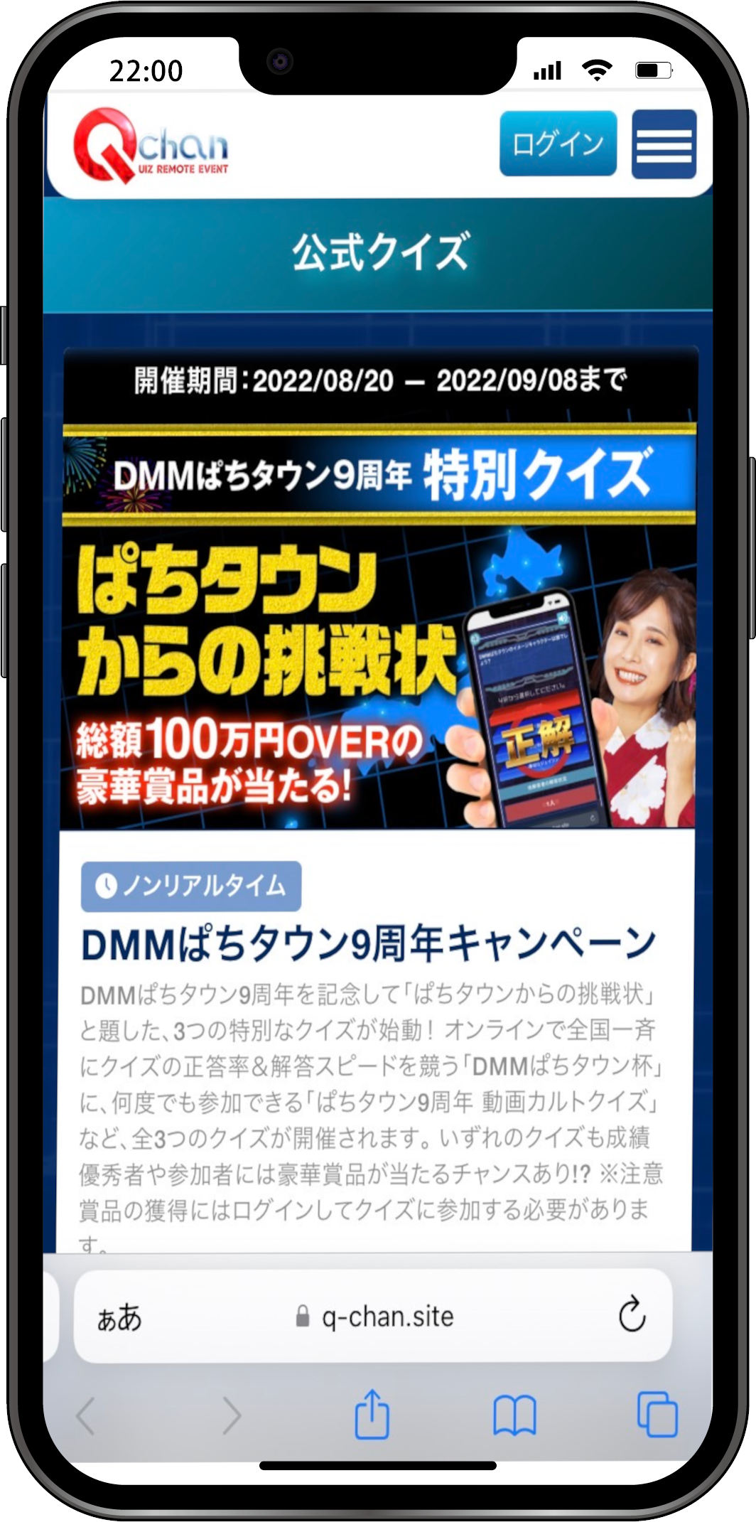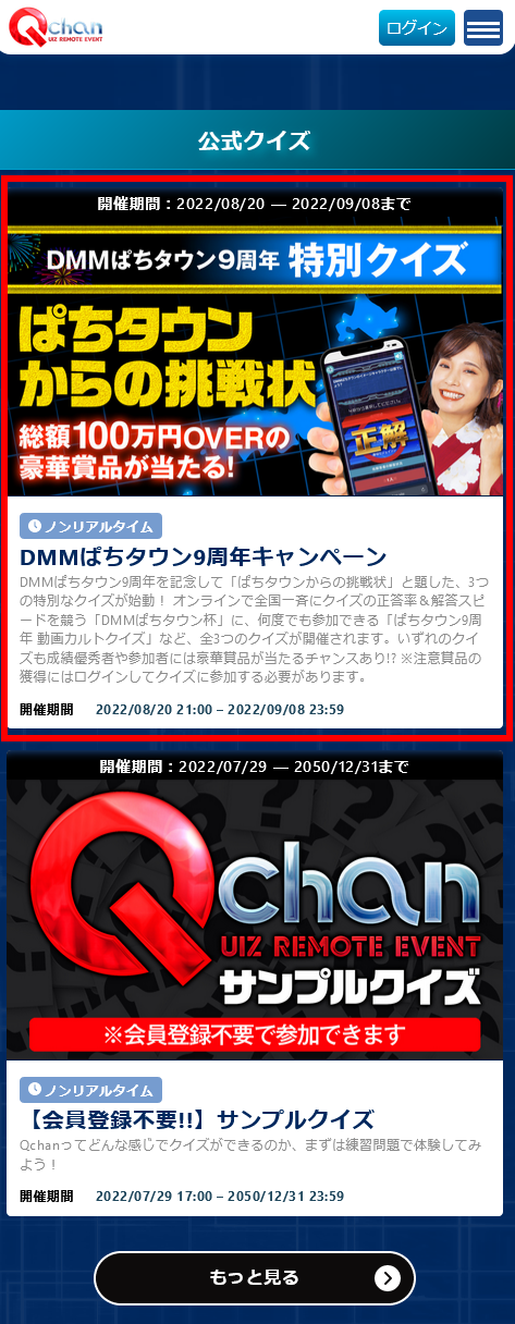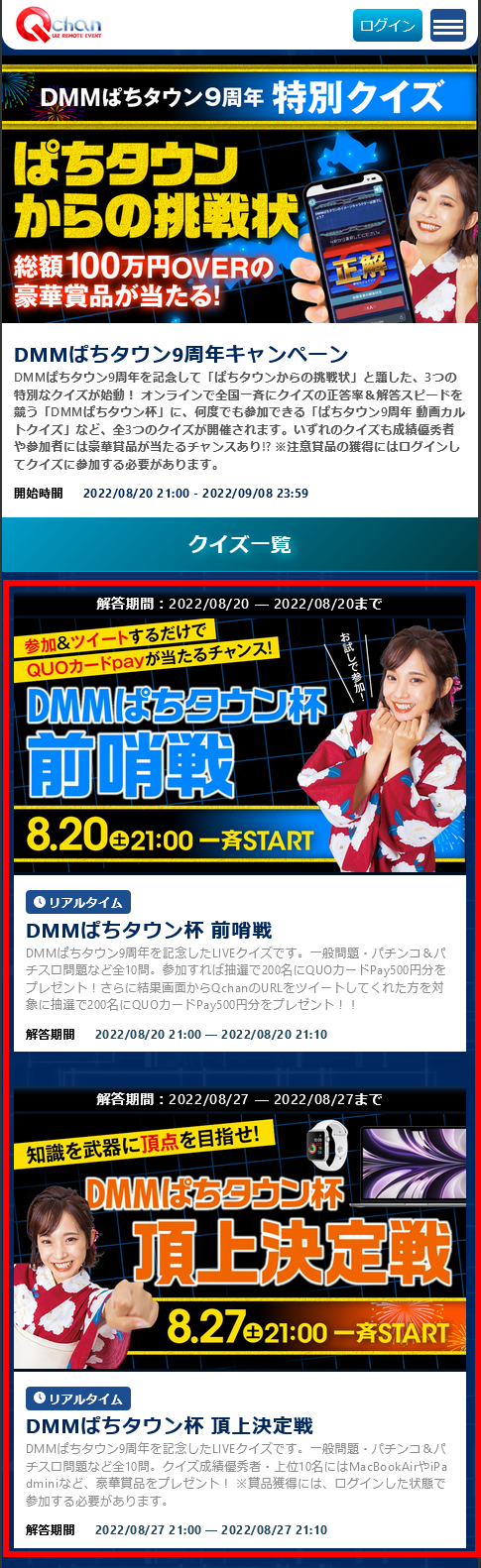 イベントにあるクイズを進むとクイズの詳細が表示されます。
